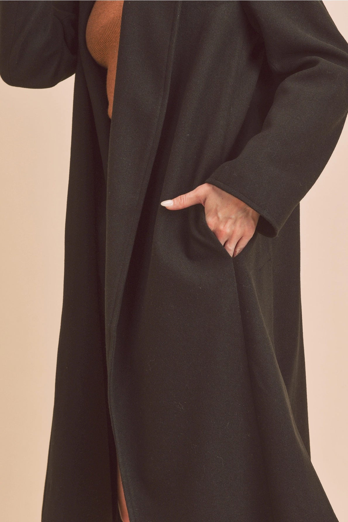 Our Paris is a must have for this season featuring a collar neckline, side slit, and a longline silhouette, this jacket is one chic piece.