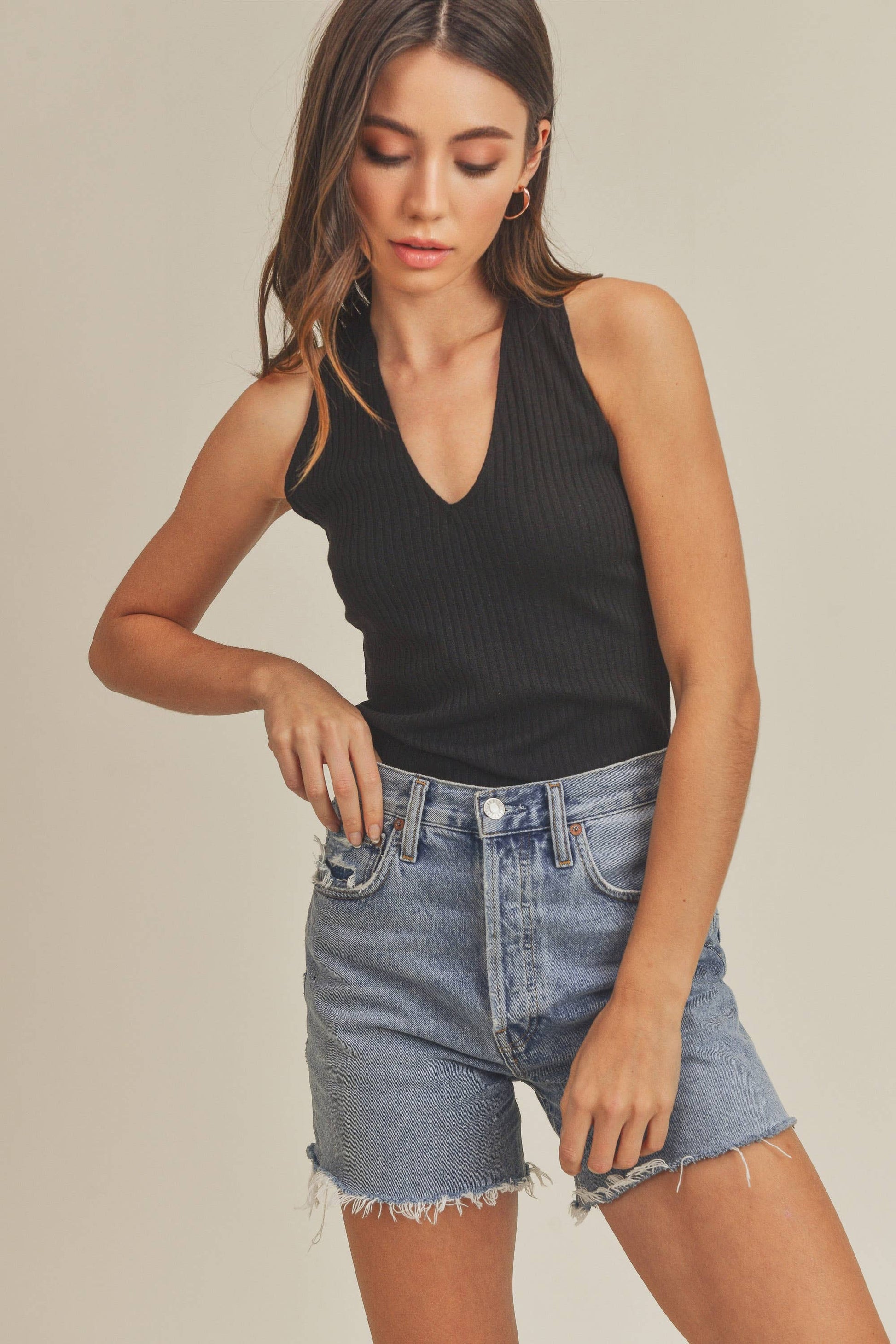 The Nadine tank features a soft and stretchy fabrication that will contour your body with a cross-back design.