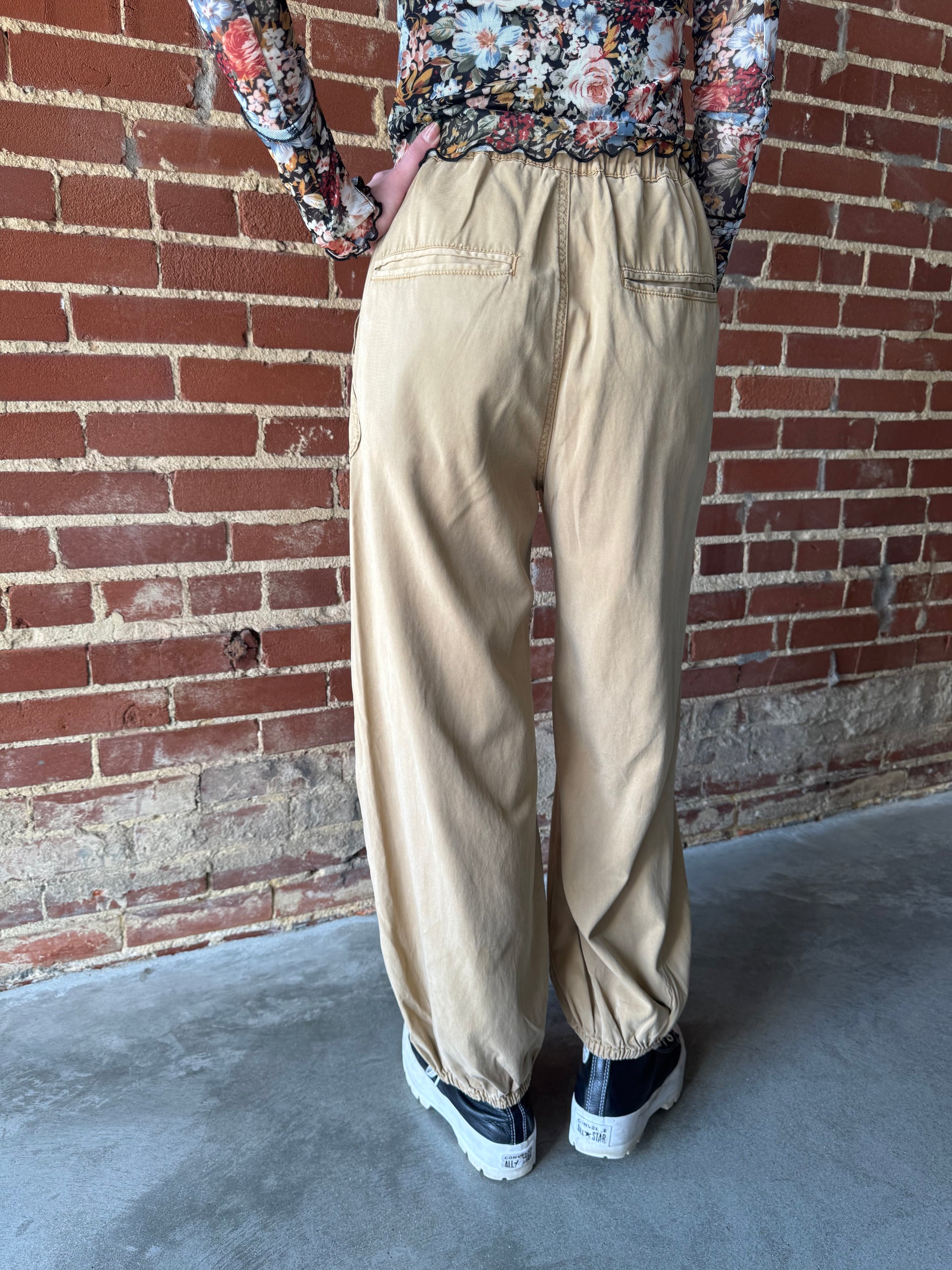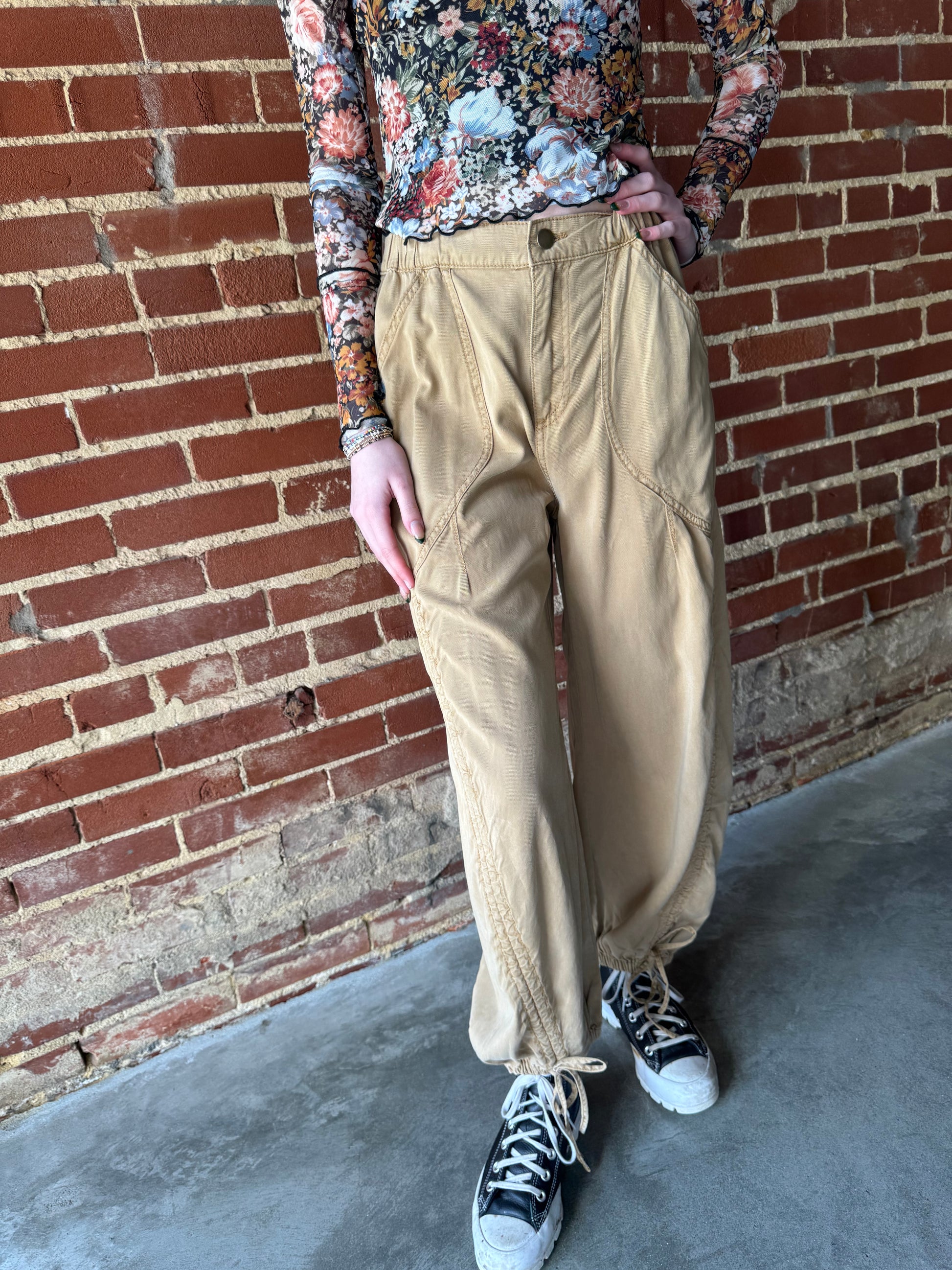 These khaki pants not only offer a comfortable fit, but also feature a unique drawstring detail on the leg for a personalized, cinched look.