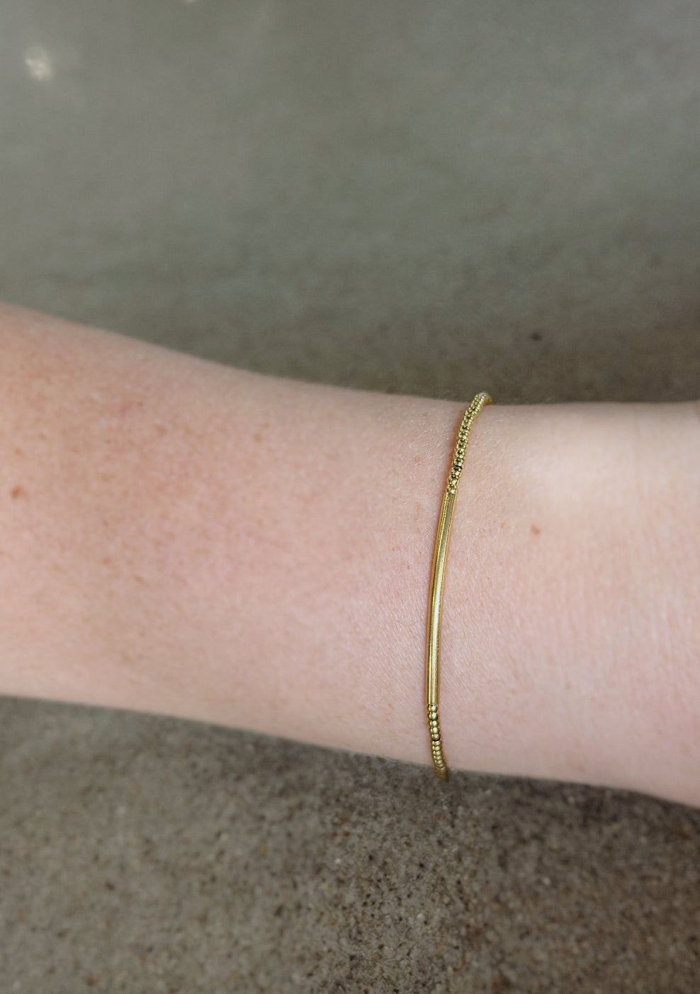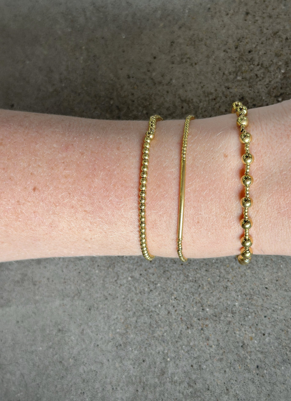 Delicate tiny beads meet a sleek golden bar for minimalist elegance you can wear every day.