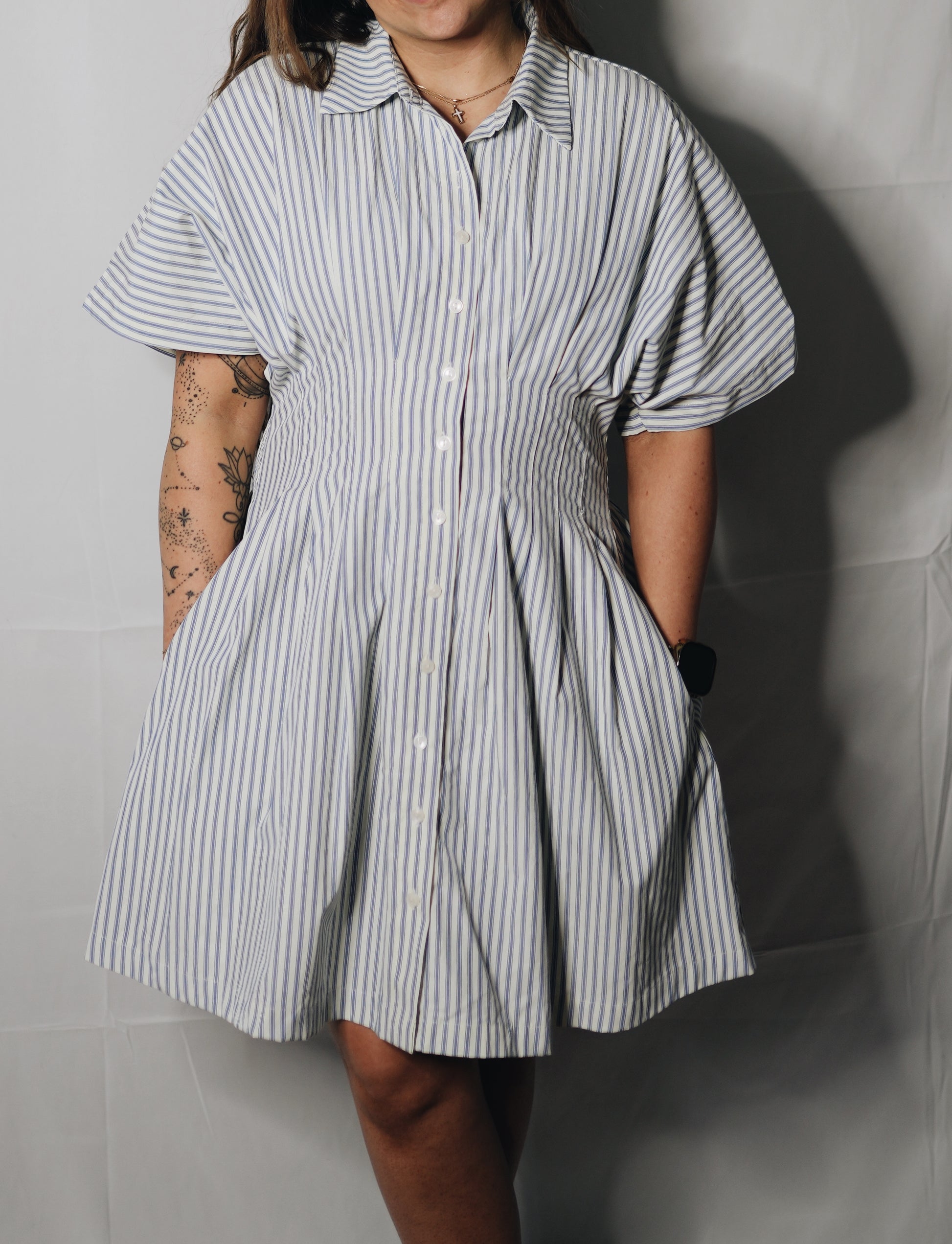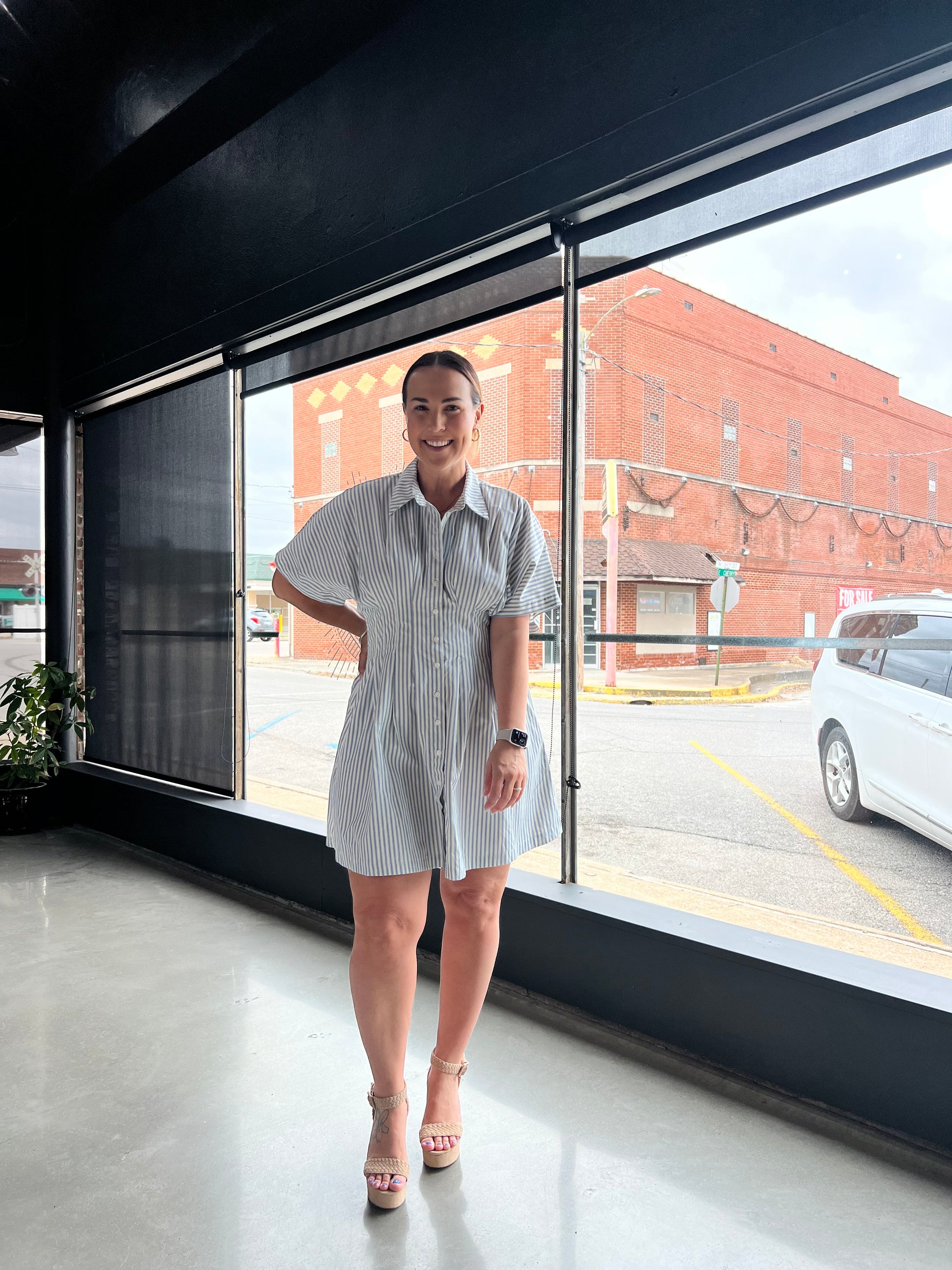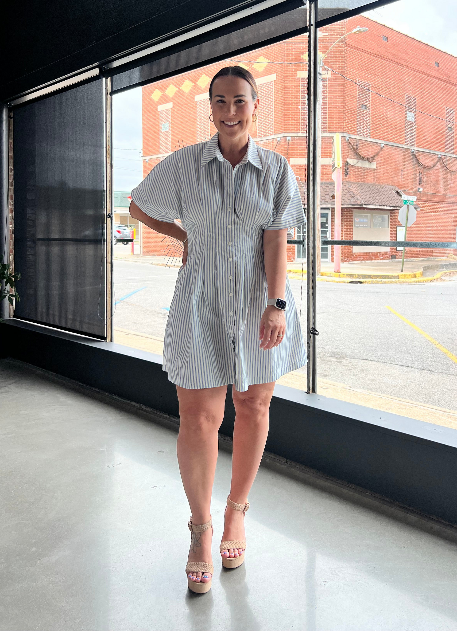 This mini dress has a fitted waist, pockets, and a dolman sleeve. The collar and buttons make this an elegant addition to your wardrobe.