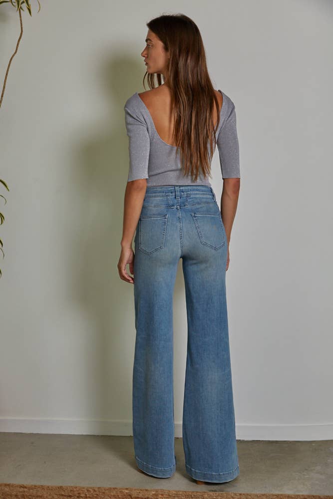 This FLAUNT IT bodysuit is a blended knit sweater made from viscose, and nylon. It features a scoopneck and 3/4 sleeve.